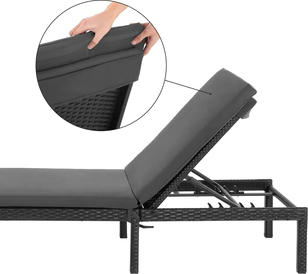 SONGMICS Sonnenliege, Liegestuhl, Gartenliege, Mit 5 Cm Dicker Auflage, Polyrattan, Rückenlehne Verstellbar, 59 X 198 X 28 Cm, Bis 150 Kg Belastbar Schwarz-beige GCB27GYV1
