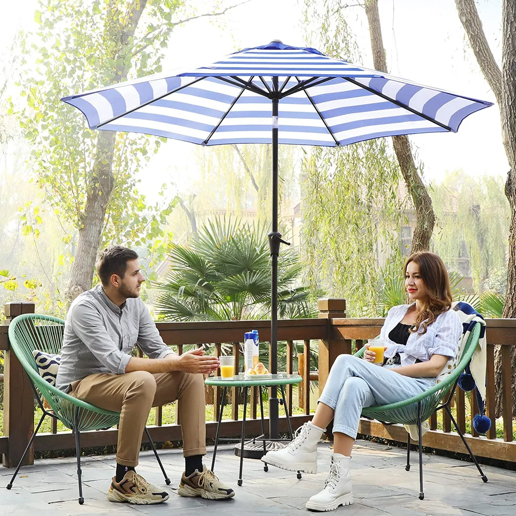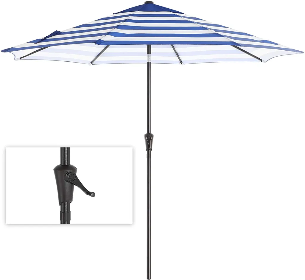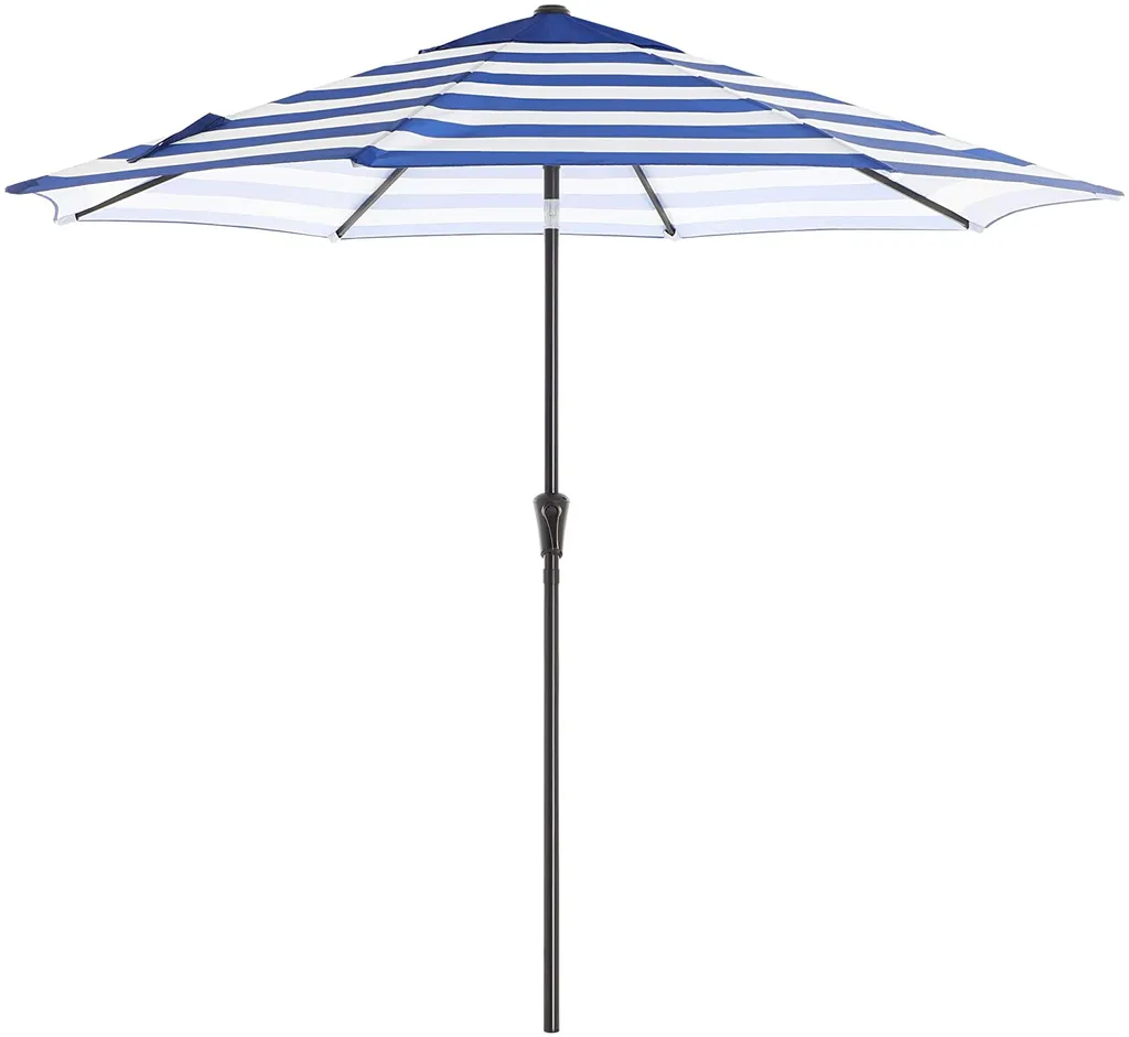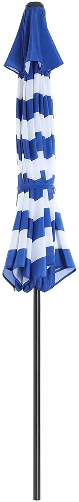 SONGMICS Sonnenschirm, Ø 290 Cm, Sonnenschutz, 8 Schirmrippen, UV-Schutz Bis UPF 50+, Knickbar, Mit Kurbel, Ohne Ständer, Outdoor, Garten, Balkon, Terrasse, Blau-weiß Gestreift GPU010Q01