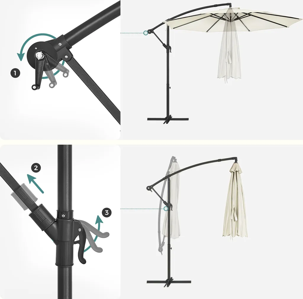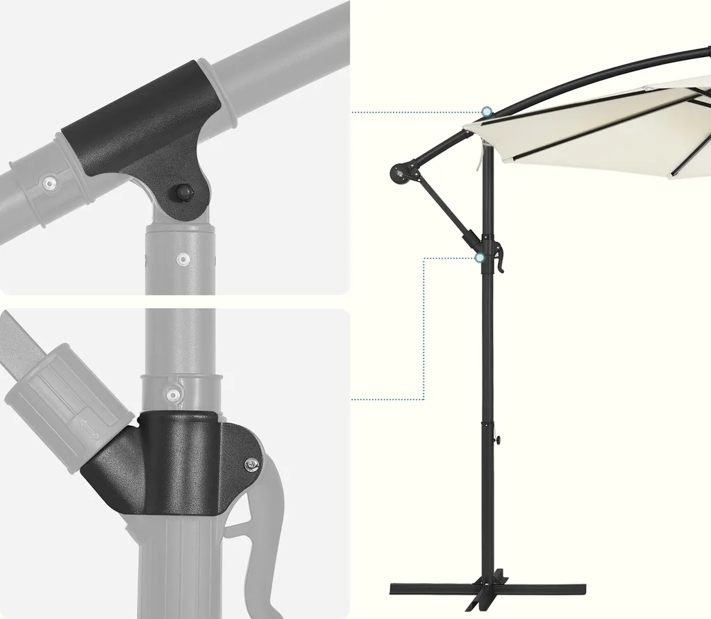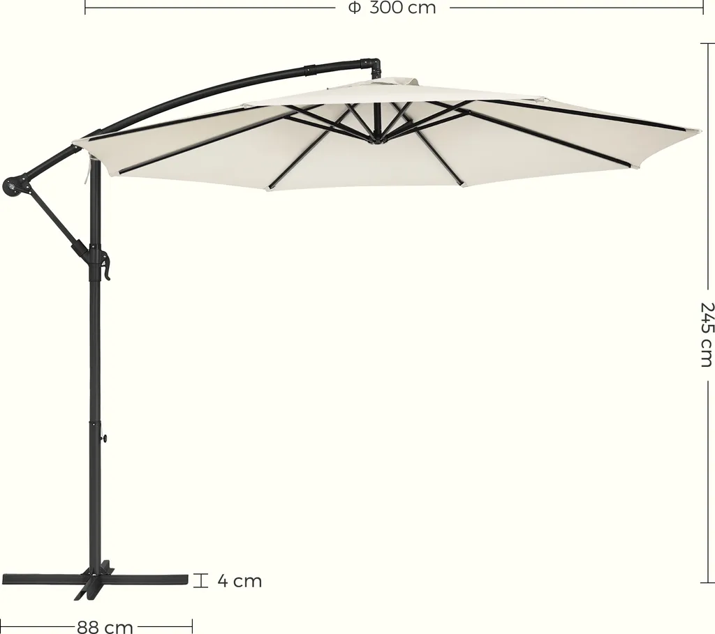SONGMICS Sonnenschirm, Ø 300 Cm, Mit Ständer, Sonnenschutz UV-Schutz Bis UPF 50+, Mit Kurbel Zum Öffnen Und Schließen, Beige GPU116M01