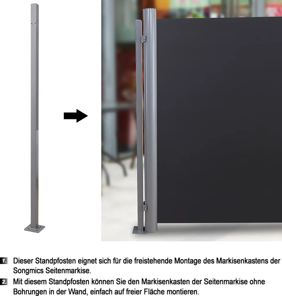 SONGMICS Standpfosten Für Markisenkasten, Haltestange, Keine Wandmontage Der Markise Erforderlich, Nur Für SONGMICS Einzel-Seitenmarkise Mit Alu-Standpfosten Geeignet, Grau GSA002