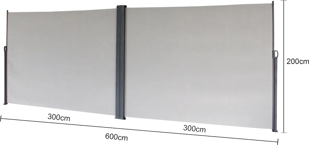 SVITA Doppel Seitenmarkise 600x200cm Sichtschutz Sonnenschutz Ausziehbar Hellgrau
