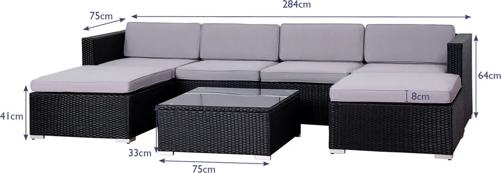 SVITA Poly Rattan Lounge Schwarz Lugano Gartenset Gartenmöbel