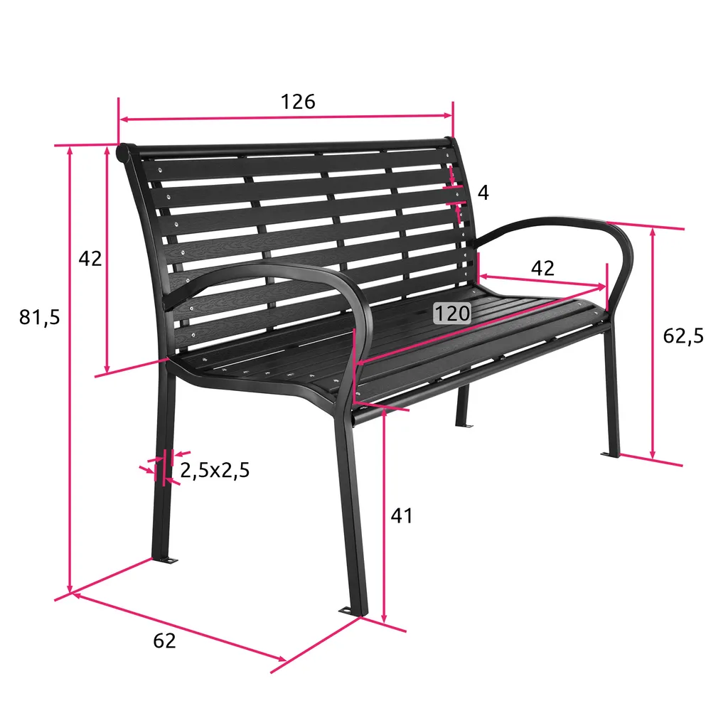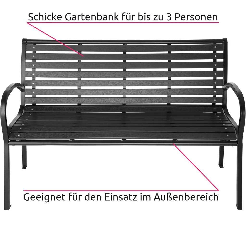 Tectake Gartenbank Pino 3-Sitzer 126x62x81,5cm – Schwarz