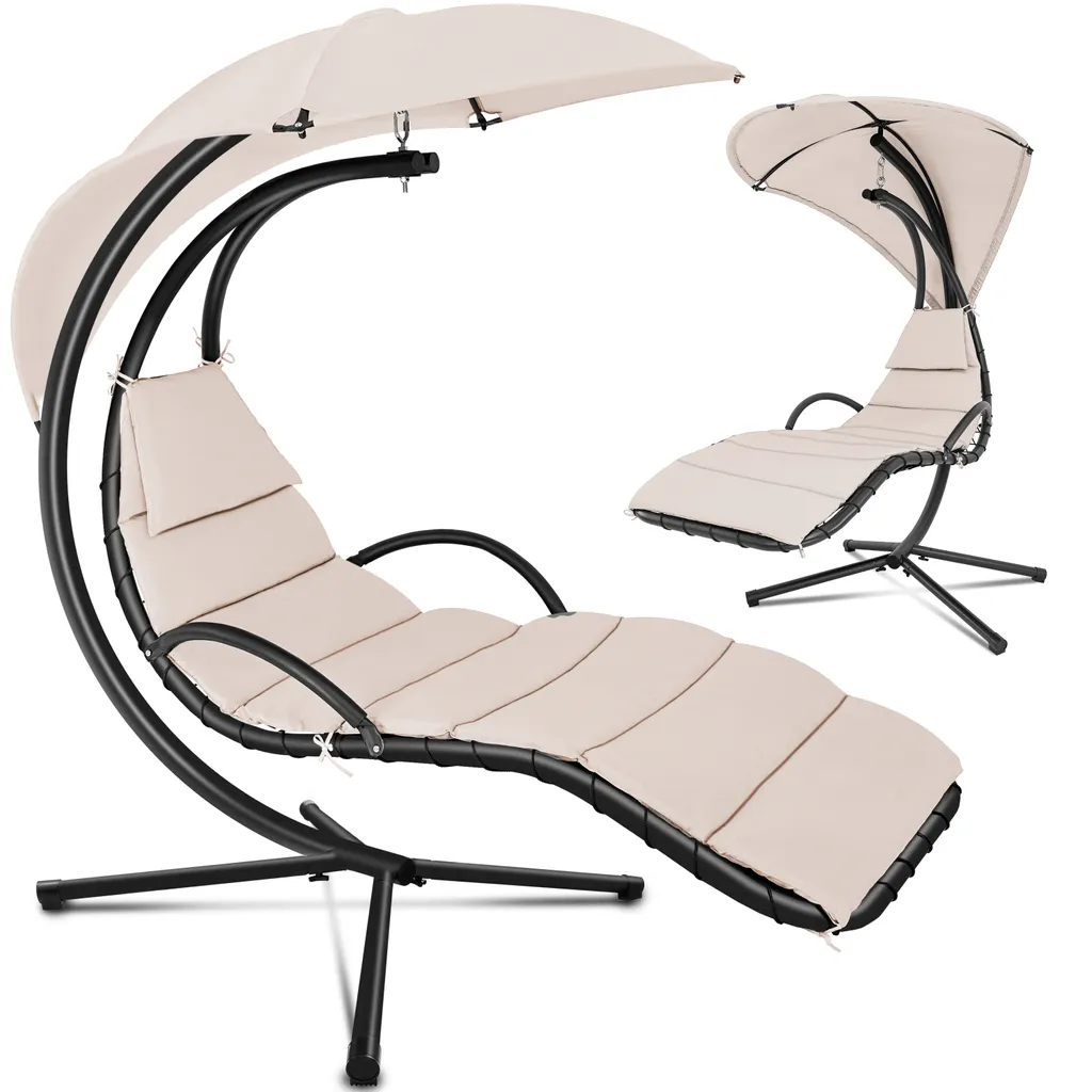 Tillvex Hängeliege Beige Mit Gestell Schwebeliege Schwingliege Gartenliege Sonnenliege Garten