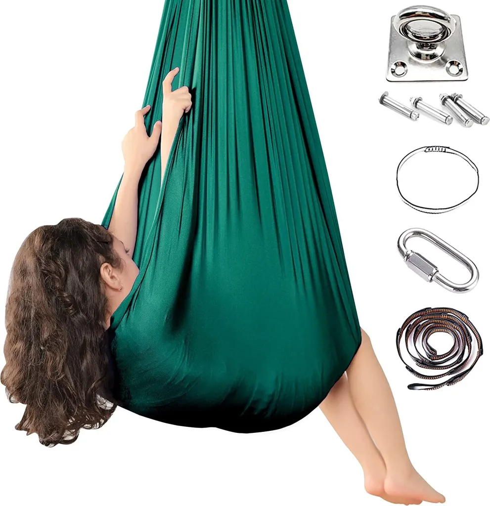 Topchances Kinder Therapie Schaukel, Indoor & Outdoor Kinder Schwingen Hängematte, Sensorisch Therapie Schwingen Sessel Für Autismus SPD ADHS Asperger Kinder Schaukelstühle-150 X 280CM,Dunkelgrün