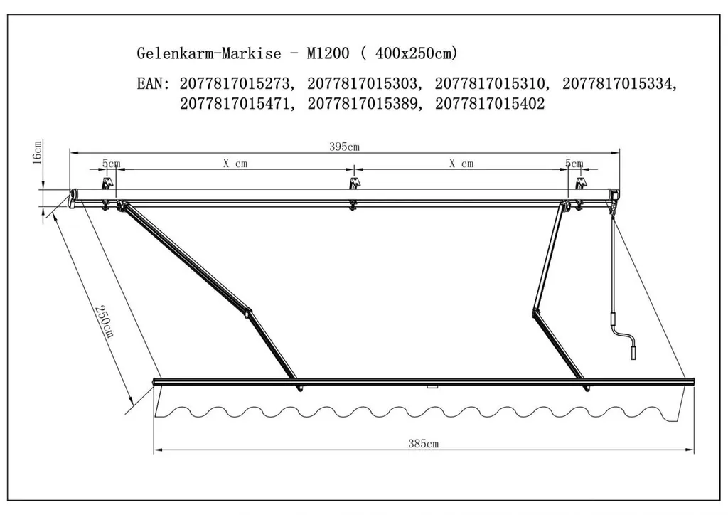 | Zusätzliche Varianten | TrendLine Gelenkarm-Markise 4 x 2,5 m Dark Grey, TrendLine Gelenkarm-Markise 4 x 2,5 m Sunny Stripe |
