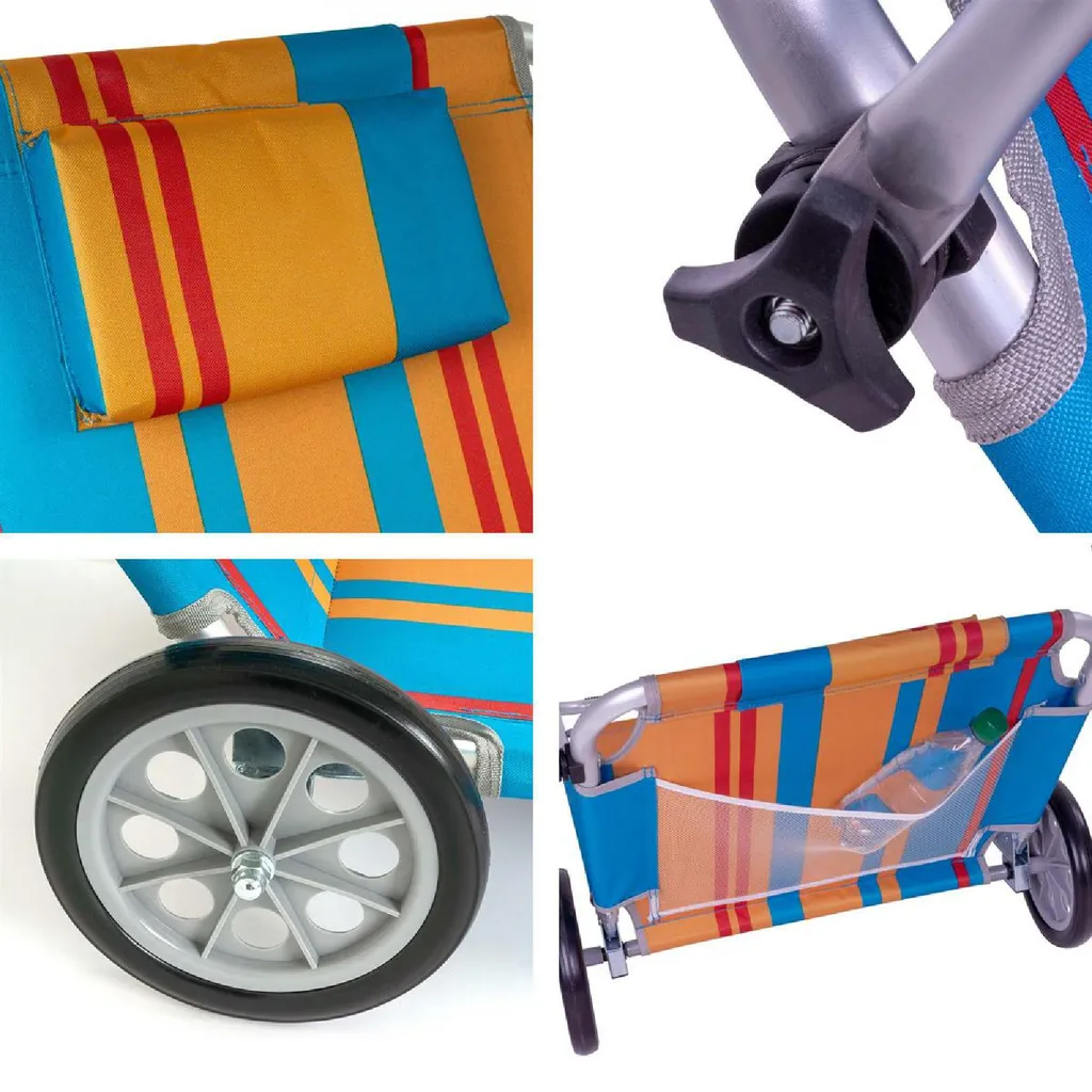 VCM Strandliege Sonnenliege Transportliege Gartenliege Mit Räder Und Sonnendach Bunt