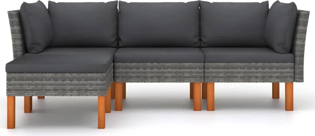 VidaXL 4-tlg. Garten-Lounge-Set Mit Kissen Poly Rattan Grau