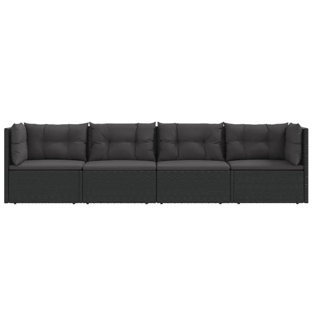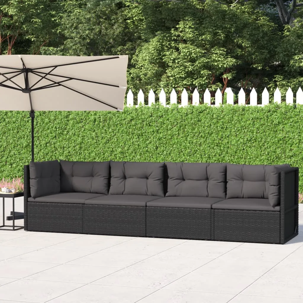 VidaXL 4-tlg. Garten-Lounge-Set Mit Kissen Schwarz Poly Rattan