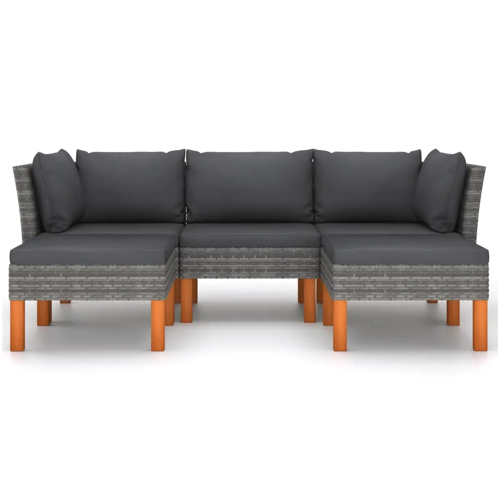 VidaXL 5-tlg. Garten-Lounge-Set Mit Kissen Poly Rattan Grau