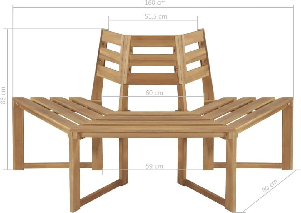 VidaXL Baumbank Halb-Hexagonal 160 Cm Massivholz Akazie