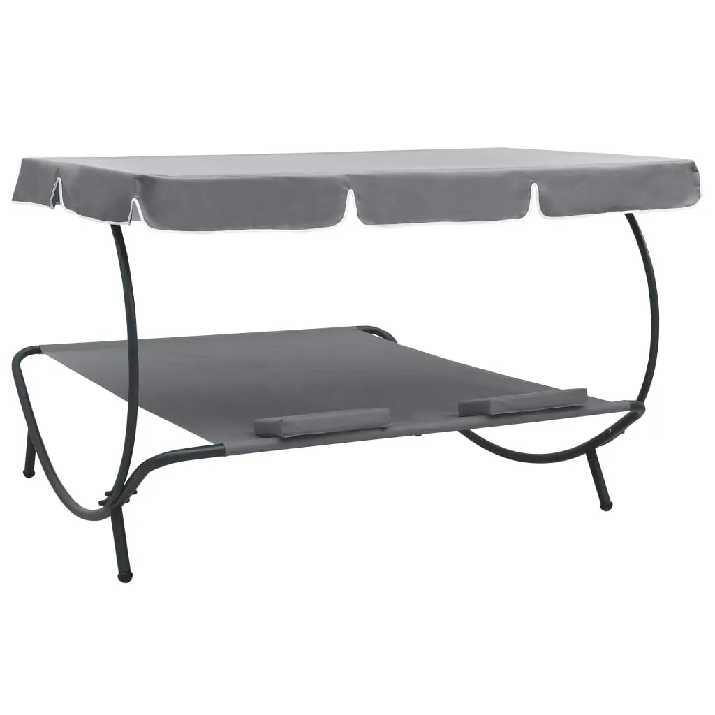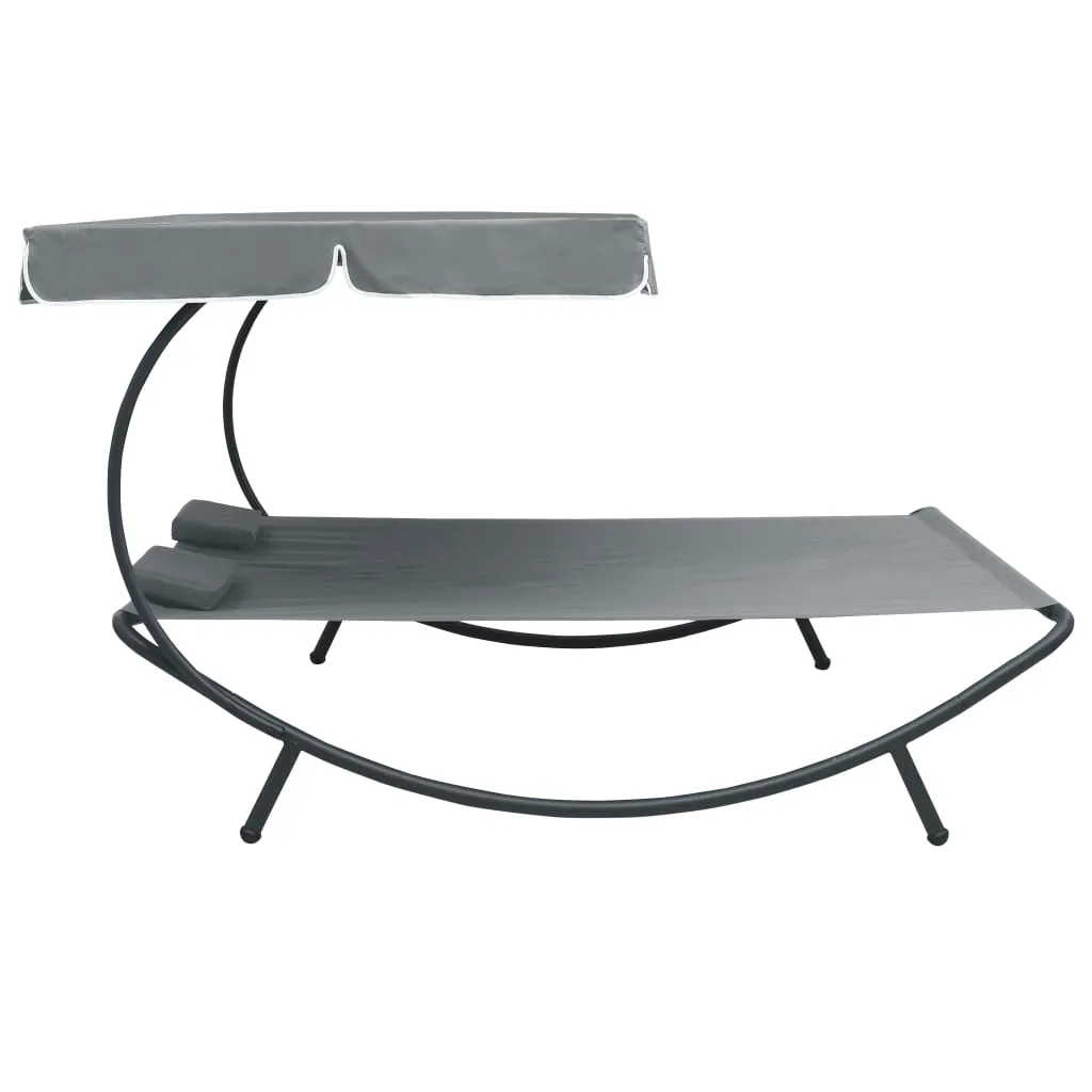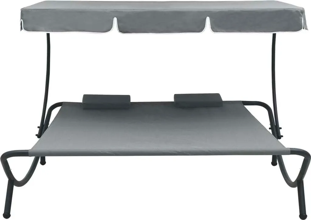 VidaXL Garten-Sonnenliege Mit Sonnendach Und Kissen Grau
