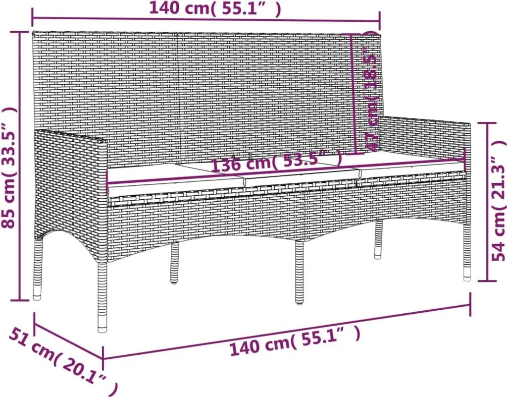 | Zusätzliche Varianten | vidaXL Gartenbank 3-Sitzer mit Kissen Schwarz Poly Rattan, vidaXL Gartenbank 3-Sitzer mit Kissen Schwarz Poly Rattan |