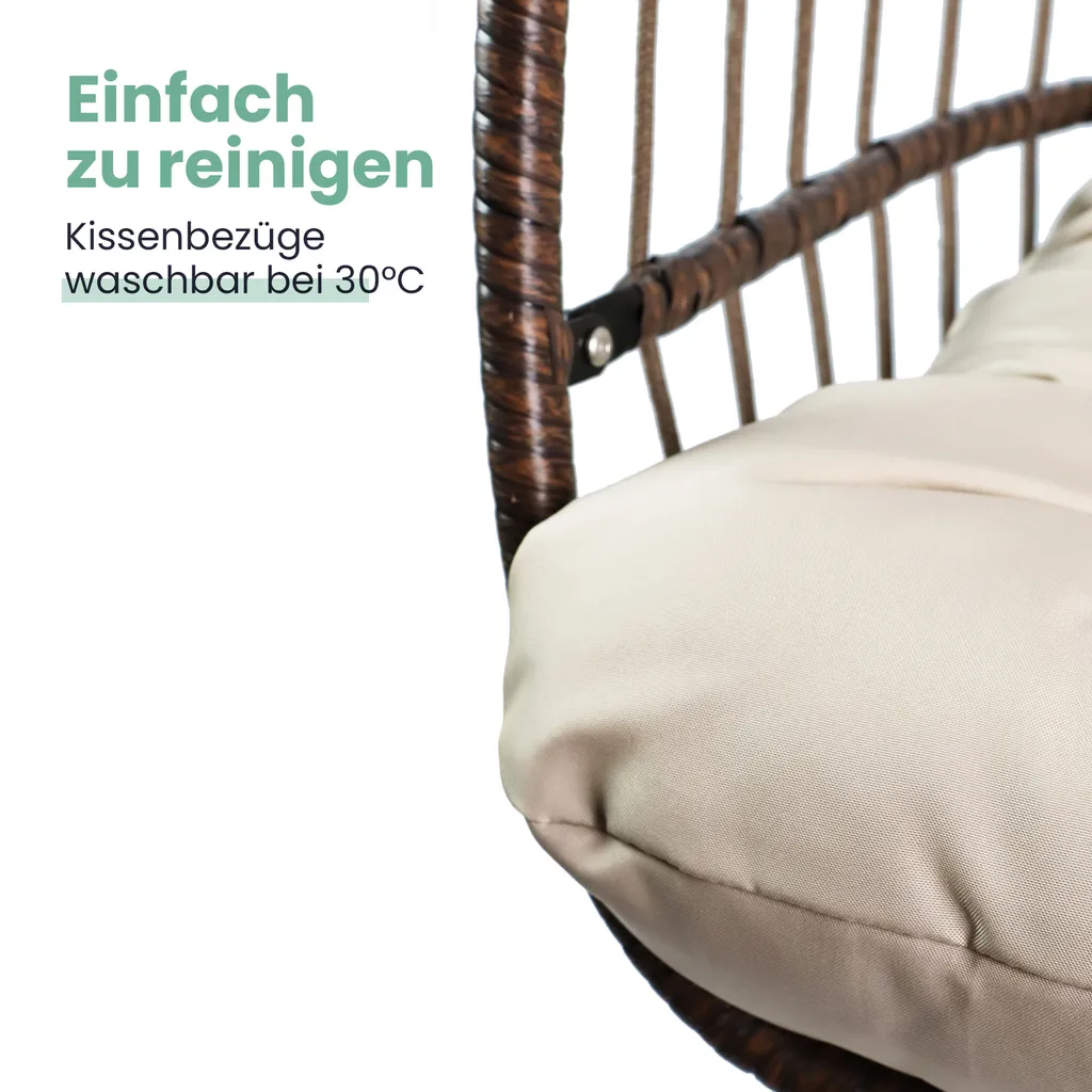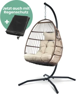 VITA5 Hängesessel Mit Gestell – Bequemer Hängekorb Sessel Zum Entspannen – Einzigartiger Hängesessel Indoor Und Outdoor – Boho Egg Schaukel Für Terrasse, Kinderzimmer, Leseecke – 150kg Tragkraft, Beige