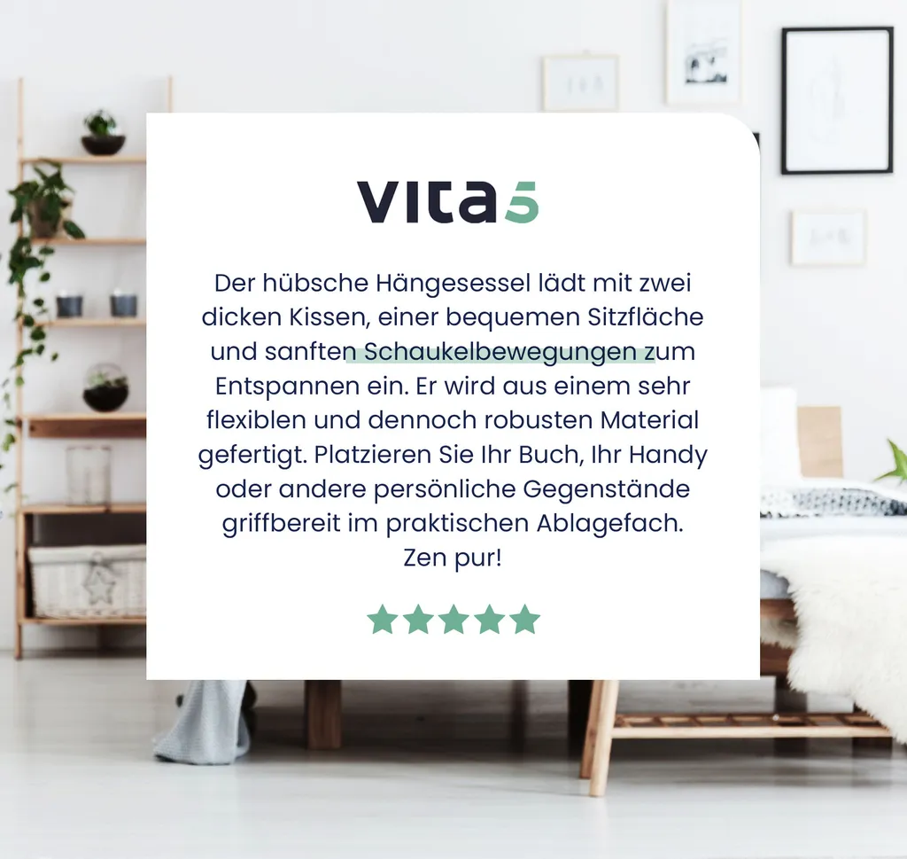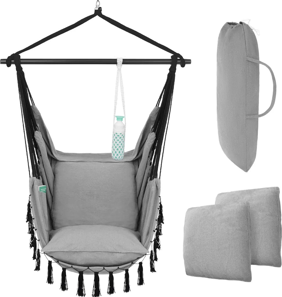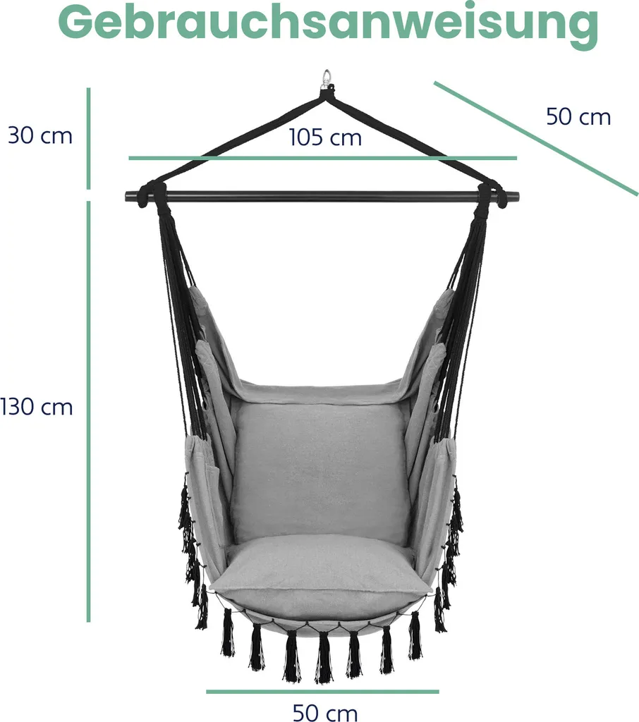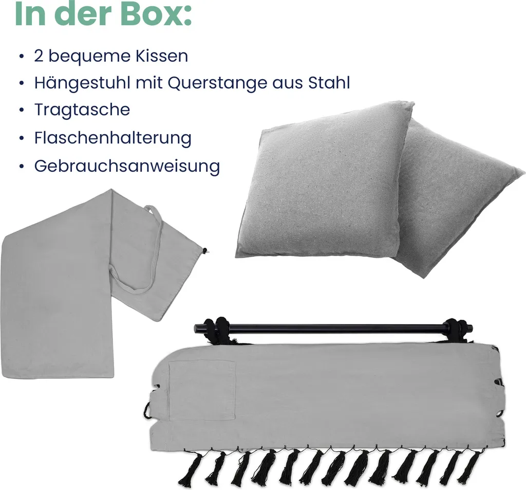 VITA5 Hängesessel Outdoor – Stabiler & Sicherer Hängestuhl – Stylischer Hängesessel Indoor – Leicht Zu Installierender Hängesessel – Bequeme Boho Raumdeko – 225kg Tragkraft – Warmes Grau