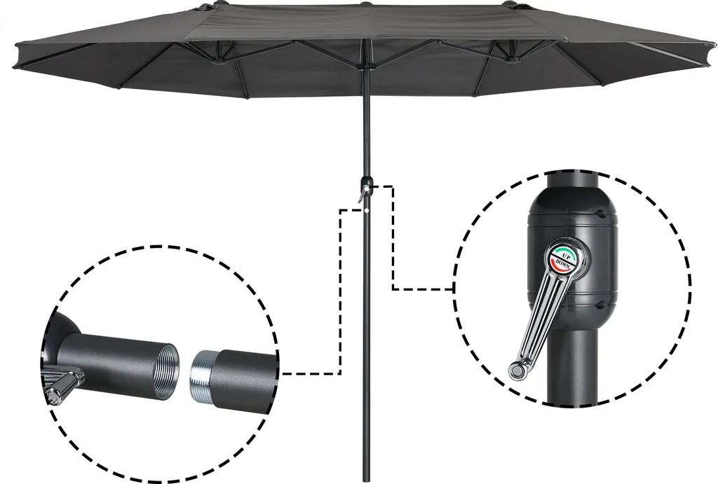 Zelsius Sonnenschirm | Doppelsonnenschirm Mit Handkurbel | 460×270 Cm